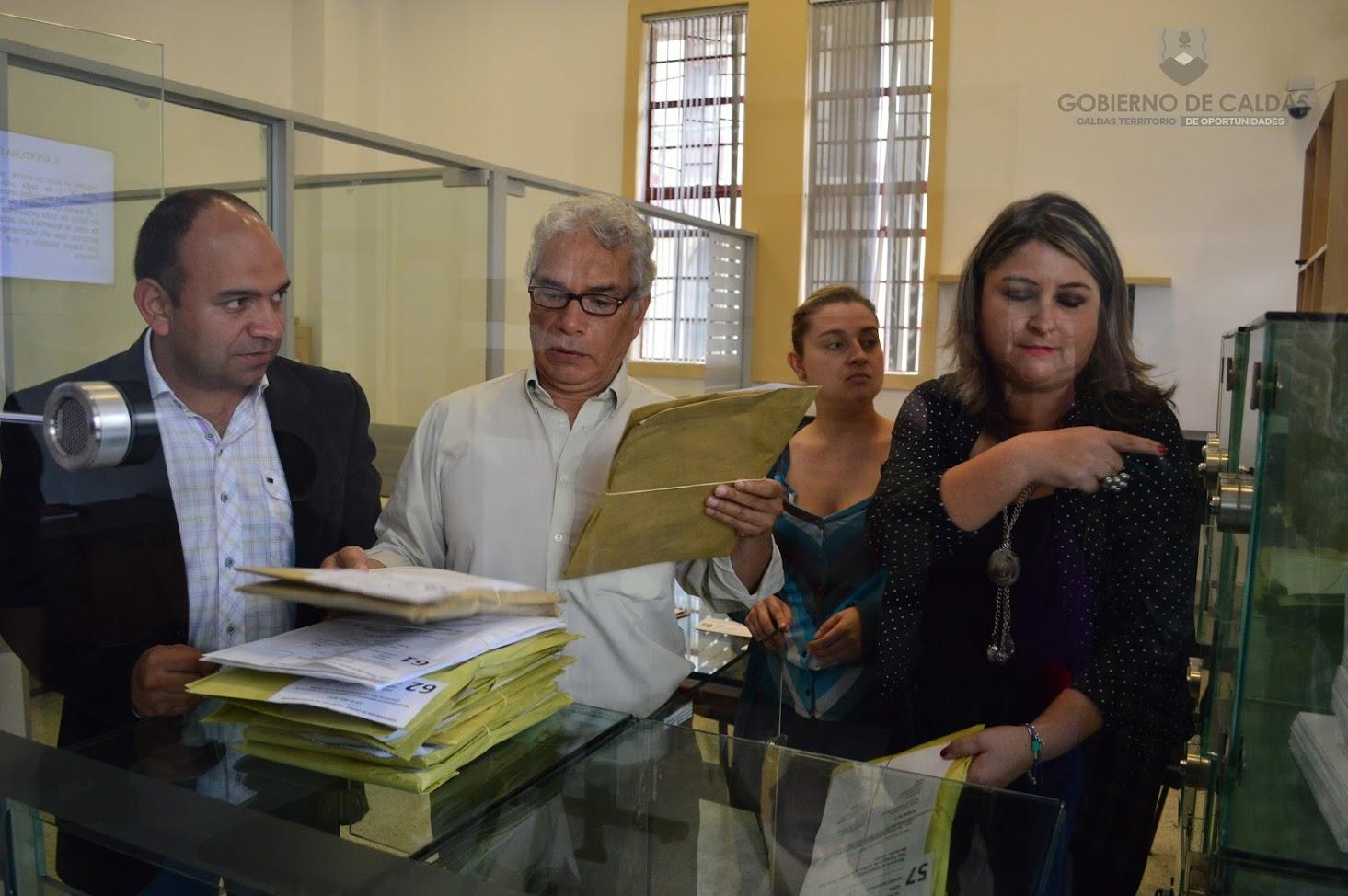 La Gobernación de Caldas a través de las secretarías de Infraestructura y Jurídica realizaron, en la Sala Transparente, el cierre del plazo para entrega de propuestas del proceso licitatorio de Placas Huellas y la apertura del primer sobre de cada oferente que contiene la información técnica, financiera y jurídica.