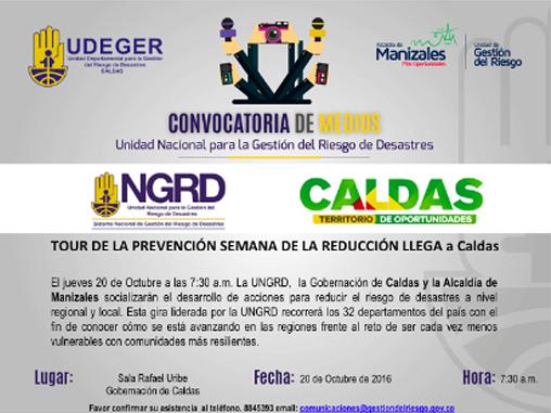 La Unidad Nacional de Gestión del Riesgo - UNGRD realiza este jueves 20 de octubre, con el apoyo de la Gobernación del Caldas y la Alcaldía de Manizales, la semana de la reducción del riesgo en la sala Rafael Uribe Uribe.
